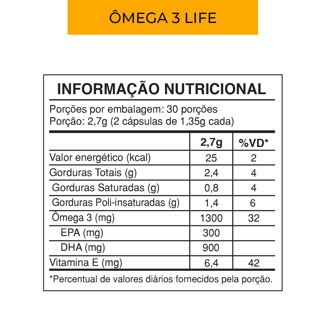 Ômega 3 Life: 2 cápsulas por dia, preferencialmente com as refeições;