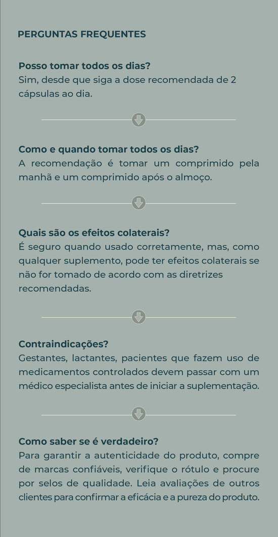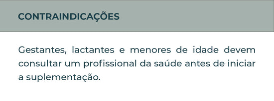 Produto destinado a adultos. Pessoas com condições médicas, gestantes, lactantes ou que utilizem medicamentos devem consultar um profissional de saúde antes do consumo. Não exceder a dose recomendada. Pode conter derivados de leite, ovo e soja. Não contém glúten.