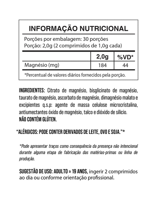 Bisglicinato de magnésio: está ligado à glicina, um aminoácido, que facilita a absorção pelo intestino e contribui para mais de 350 reações enzimáticas;