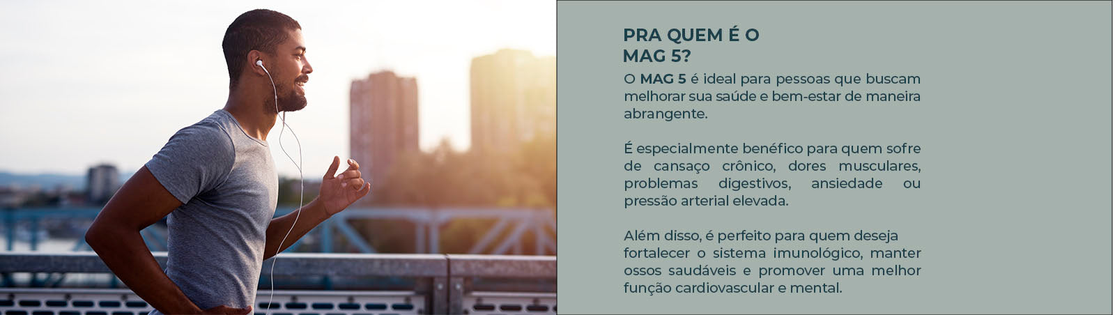 Cansaço constante, falta de foco e cãibras podem indicar deficiência de magnésio. O Mag5 combina cinco formas de alta absorção para apoiar energia, músculos, ossos e mente, ajudando você a manter disposição e bem-estar todos os dias.